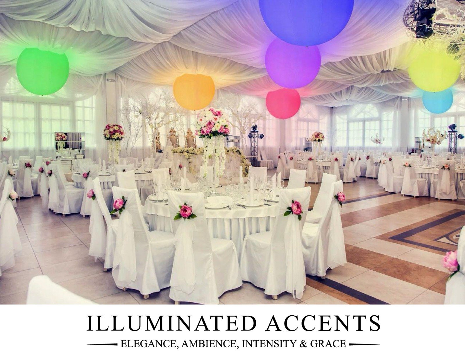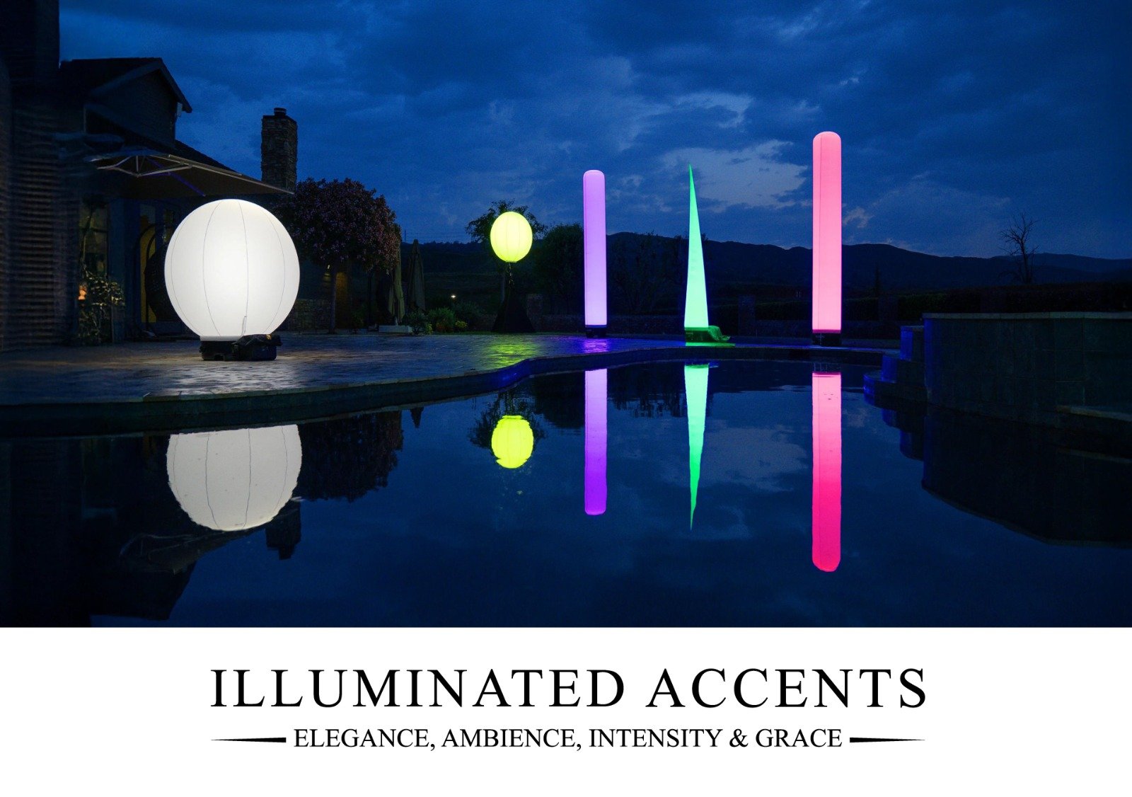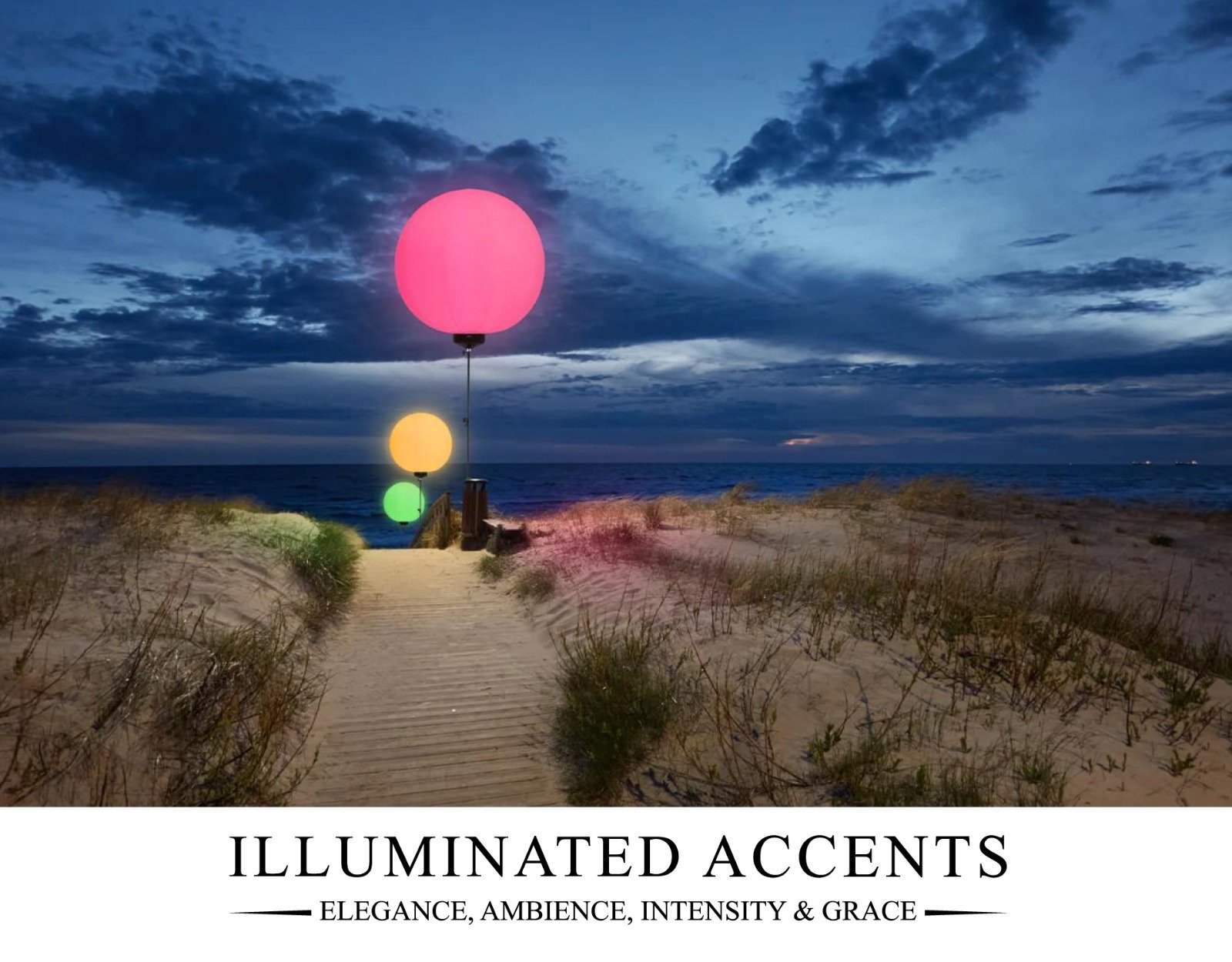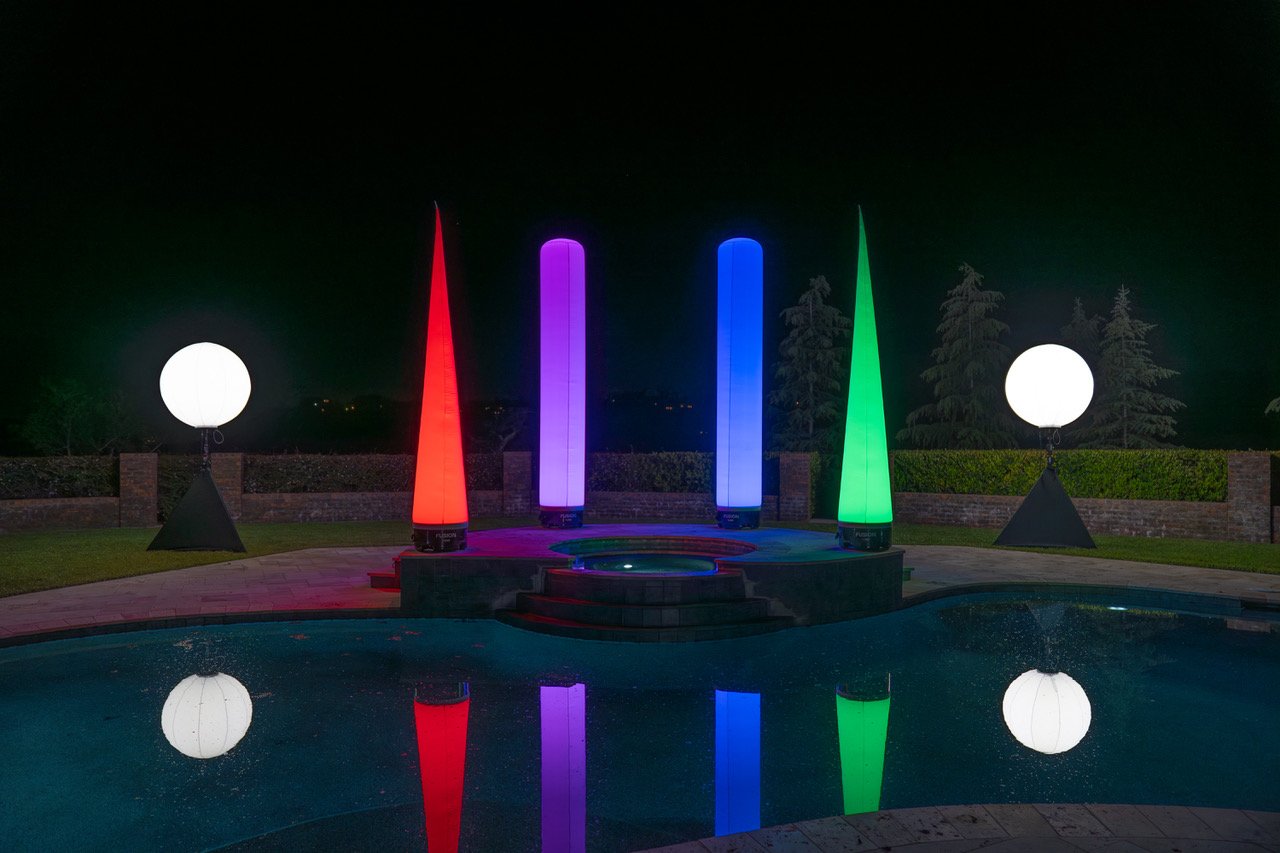 Illuminated Accents Balloon Lights transform the atmosphere of any event with dynamic RGB color-changing effects, creating vibrant, unforgettable experiences. Theater-quality/Hollywood production fog and scent-infused bubble machine rentals, cold spark rentals, fog machine, and LED trailers are also available from Illuminated Accents.